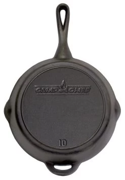 Hoping to build up your cast iron collection? Look no further than our classic 25cm, 10” cast iron skillet, seasoned with Camp Chef’s True Seasoned Finish so it’s ready to go right out of the box. Create the most delicious meals with the 10” cast iron skillet from bacon and eggs to fresh cinnamon rolls. The comfort grip handle makes for easy lifting and control, and dual pour spouts provide a more convenient cooking experience. You can’t go wrong with an essential cast iron skillet like this.