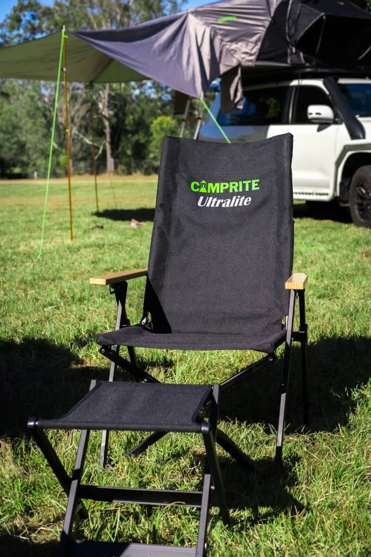The Camprite Ultralite High Back Reclining Chair is great for all outdoor adventures, whether it be camping, sporting events, picnics or weekends at the beach. This simple fold chair includes a heavy duty aluminium frame for strength and durability. This adjustable folding camp chair has been developed with a light weight polyester fabric for increased comfort.