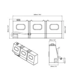 W 1000mm (39.4″) x H 350mm (13.8″) x L tapered 200mm (7.9″) to 150mm (5.9″)