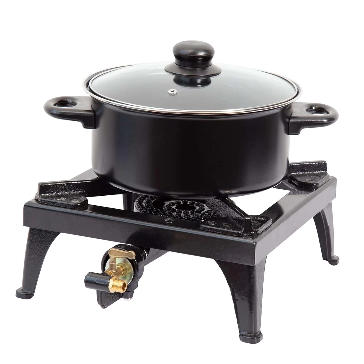 The Gasmate Single Burner Country Cooker is ideal for your next camping adventure with its sturdy and durable cast iron frame. Easy to use fine controls and a powerful high heat output makes for effortless cooking. The Single Burner Country Cooker comes complete with hose and regulator.