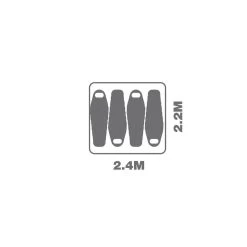 Tent floor area:Â 240 x 220 cm Tent head height: 195 cm |