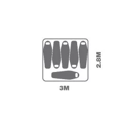 Tent floor area: 300 x 280cm Tent head height: 195 cm |